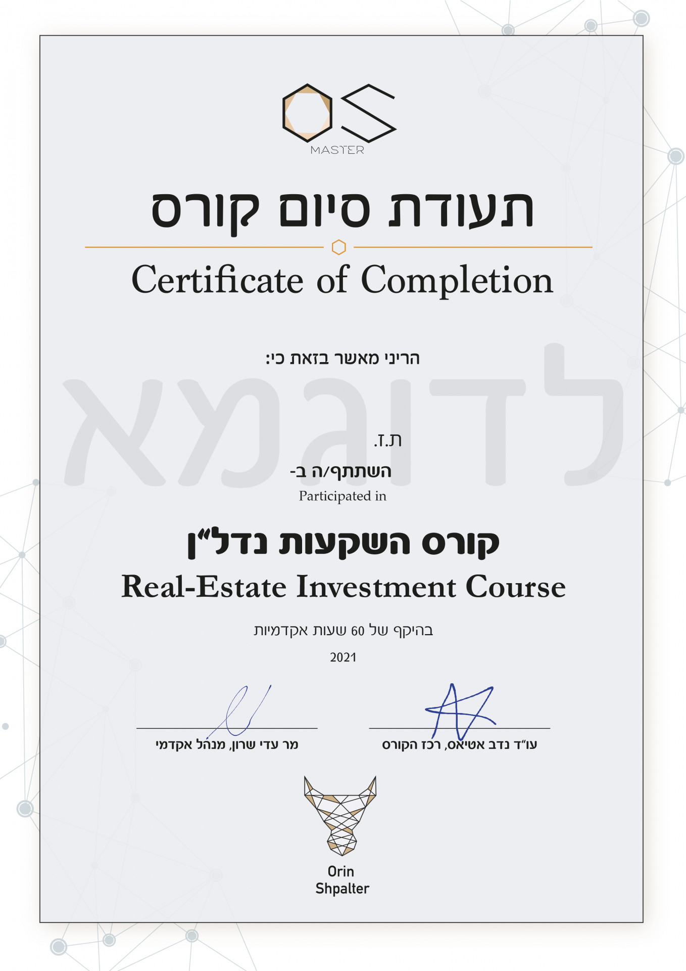קורס השקעות ויזמות נדל"ן במכללת אורין שפלטר הוא הבחירה הנכונה עבור כל מי שרוצה להכיר מקרוב את עולם הנדל"ן. יפתח לכם צוהר חדש לתחום הנדל"ן, כך שאם תמיד היה לכם חלום להבין יותר לעומק את ענף הנדל"ן, עכשיו זה הרגע להירשם ללימודים. הקורס יתאים לכם בין אם אתם מעוניינים להשקיע כתחביב, או כמקצוע או בכלל רק כדי לדעת "מה קורה מסביב".